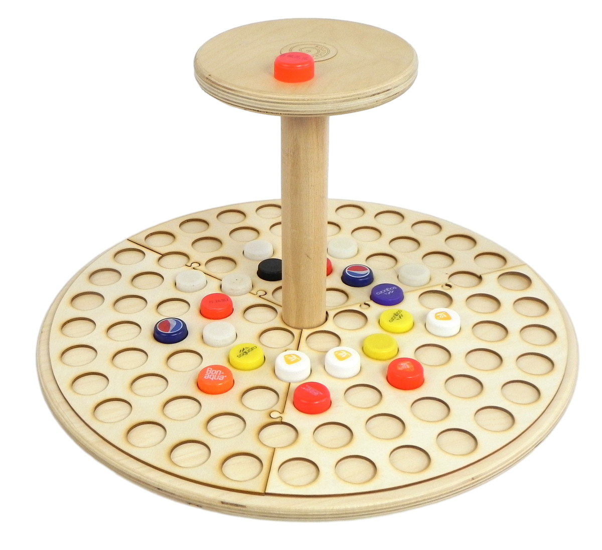 Jako vkládací prvky můžete použít víčka z pet-lahví nebo jiné prvky podobné velikosti. Až mandalu vyskládáte, nezapomeňte ji roztočit – uvidíte optický efekt splynutí barev.