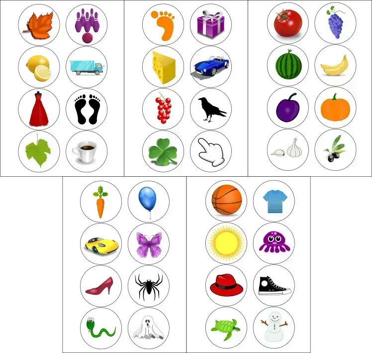 Sada obsahuje 5 zalaminovných listů velikosti A4 (po vystřižení máte 40 koleček o průměru 70 mm).