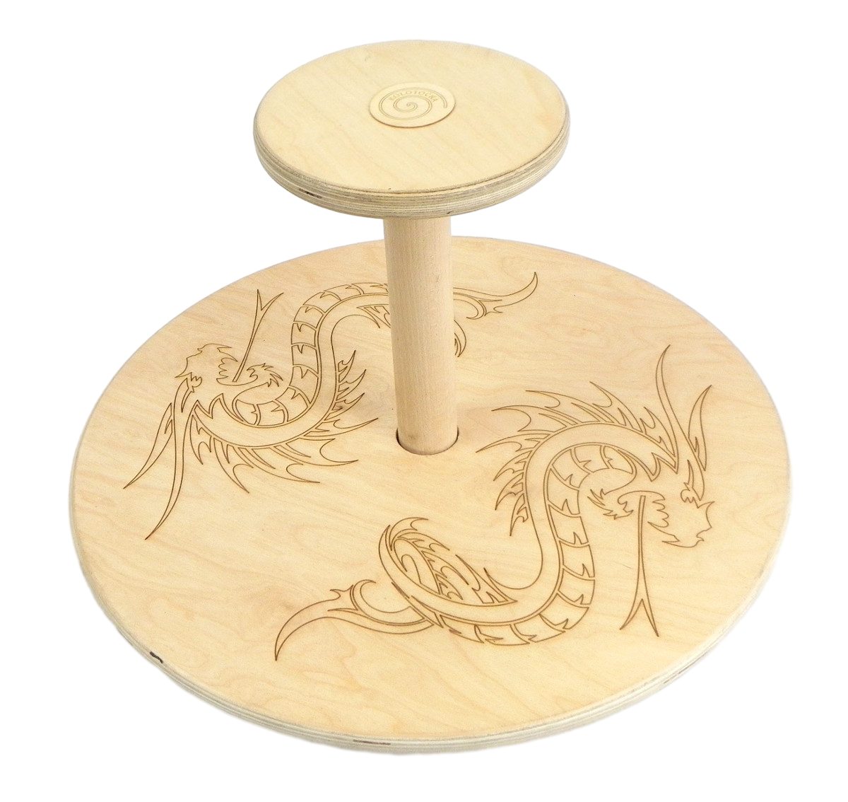 Motiv draků gravírovaný do dřeva, nebarevný.